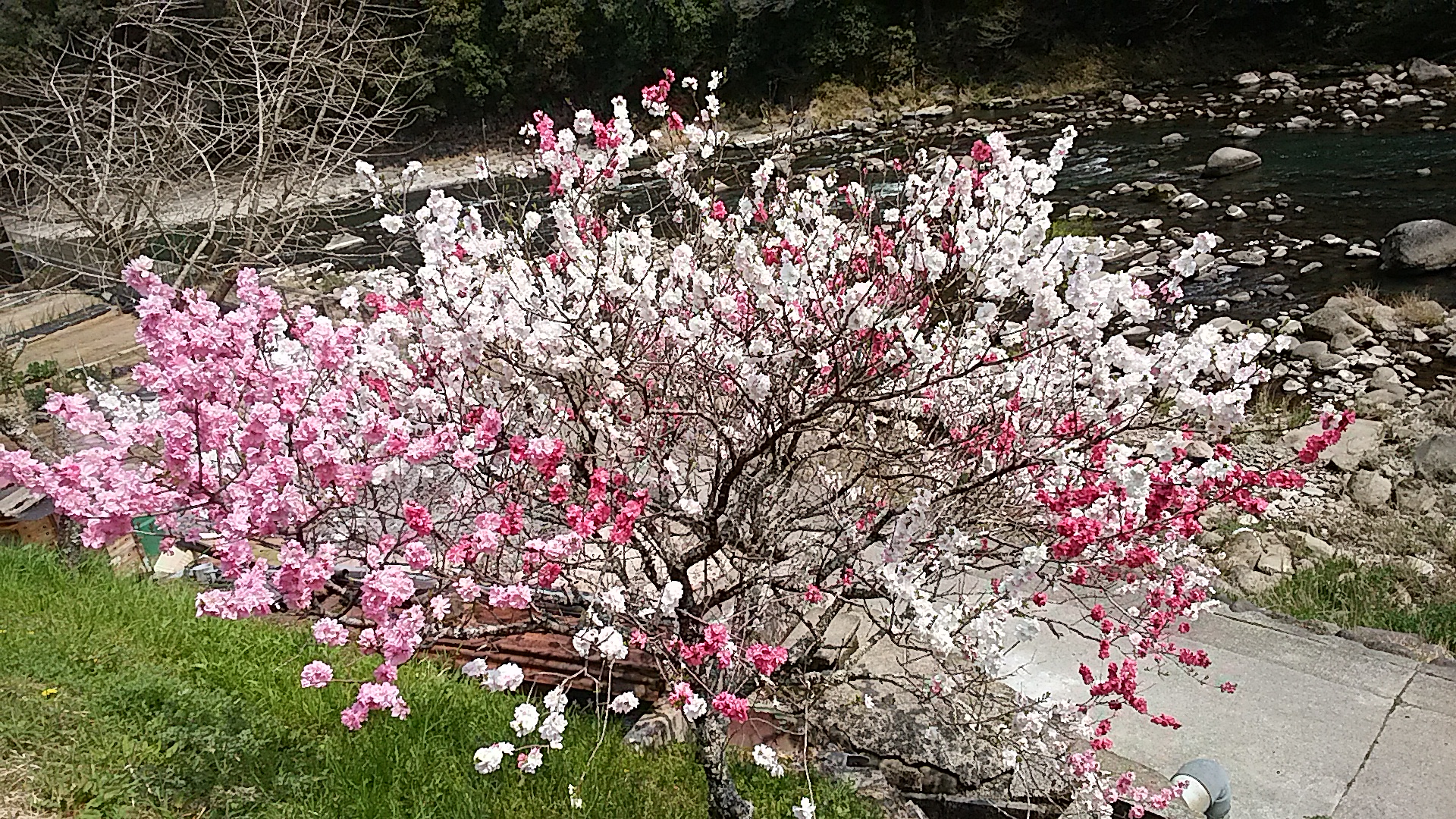 「九州テクテク歩き」写真の花は、4月中旬に 豊後の国 大分県「日田市」から「天ケ瀬温泉」に歩いて行く途中に咲いていた花です。清流を背景に咲いていて、より美しかったです。河原に降りて一休みしました。