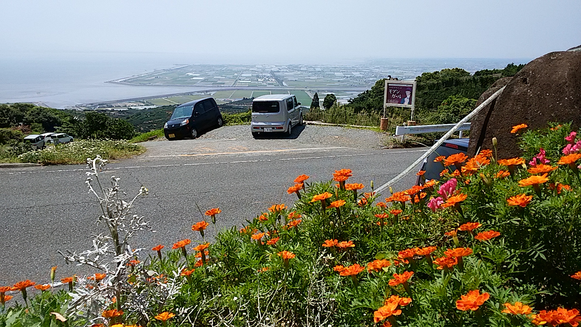 「九州テクテク歩き」は、夏目漱石の「草枕」ゆかりの「小天温泉」から、山中の国道(熊本市へ通じてます)へ登り着いた時の有明海と路傍の花です。極めて暑い日でした。