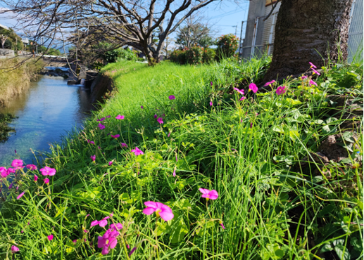 今週の「九州テクテク歩き」は、筑紫の国(福岡県)の筑前町を歩いた時のものです。大河「筑後川」の支流の、そのまた支流の土手で、小学生が魚釣りしてました。私も土手に座り込んで、釣れるかな、もうすぐ釣れるかな・・とぼんやりと呆けた顔で見てましたが、釣れませんでした。残念!