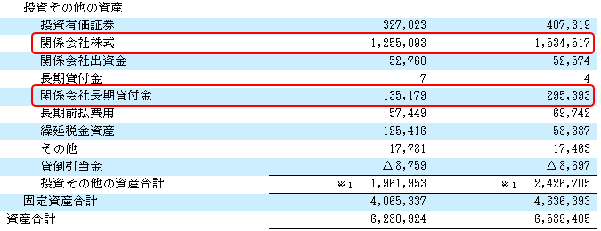 日本製鉄は膨大な資産を保有してますが、その資産のうちで投資に関する科目をみると、今年3月の決算期では、前期に比較して関係会社の株式の取得、関係会社への長期的な貸付金の増加が目立ちます。この2の科目で約4,400億円の支出増となっています。