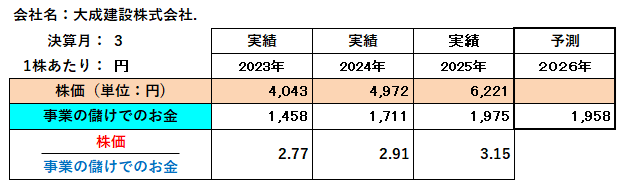 現時点での情報に基づくと、大成建設の「事業の儲けで獲得したお金」の成長と、将来への投資活動は、今後も株価の押し上げ要因となる可能性が高いと考えられます。