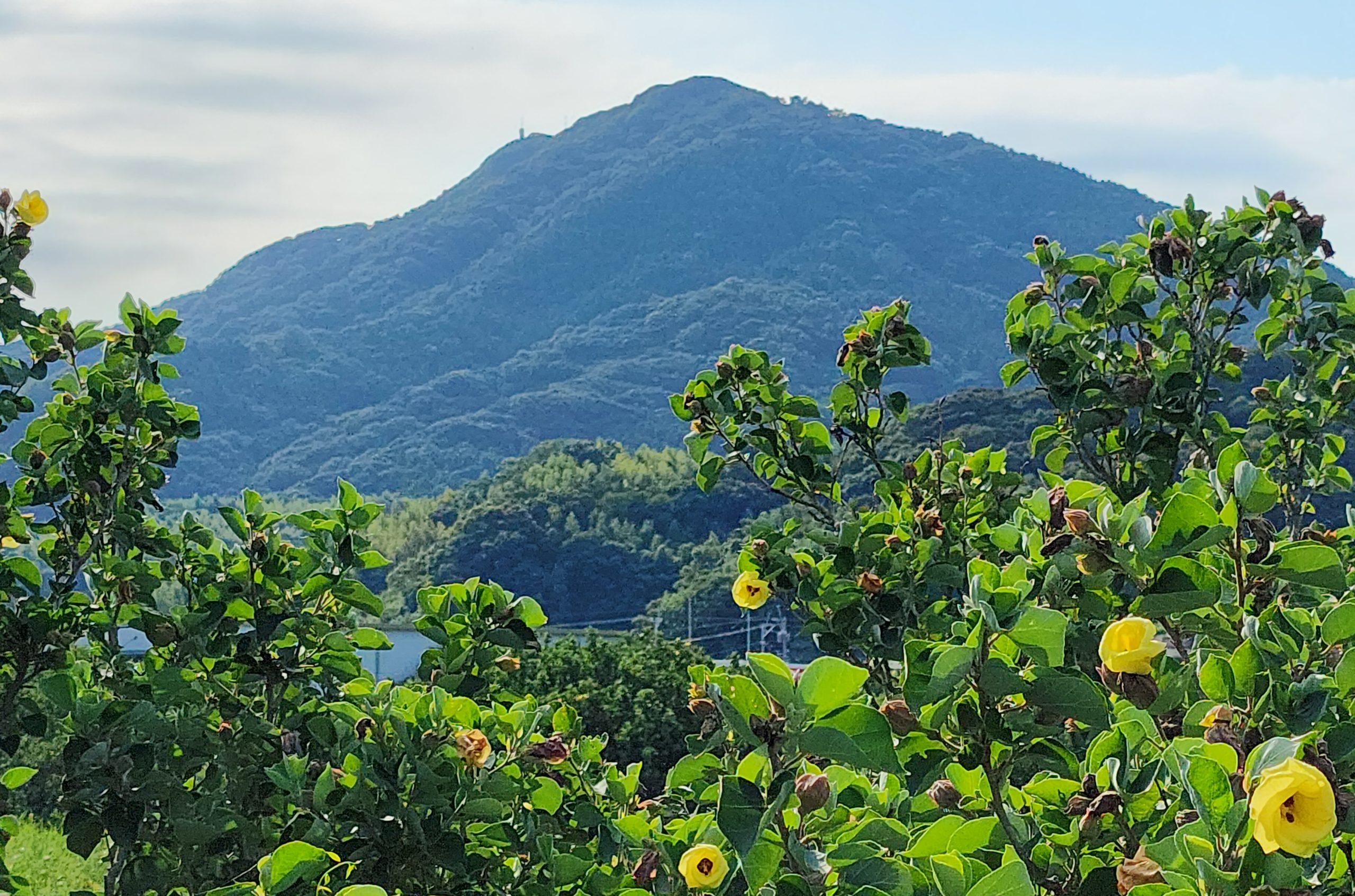 今週の「九州テクテク歩き」:筑前の国(福岡県)の糸島市の「ハマボウの花」です。7月~8月に咲き、朝に咲いて夕方に枯れる花です。雷山川の支流の泉川に沿って群落が続いています。「ハマボウ」を「ハゲ坊(私)」が撮りました。朝だと一面黄色い花が見れたはずですが・・。