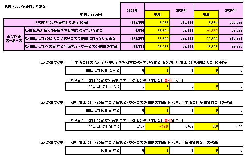したがって財務的には、この「預り金」に含めて表示されている「関係会社に対する預り金」の動きに注意する必要があります。ただ、2022年からその残高はあまり増減変化していないことから、現状では財務上の課題・問題点とまでは言えません。