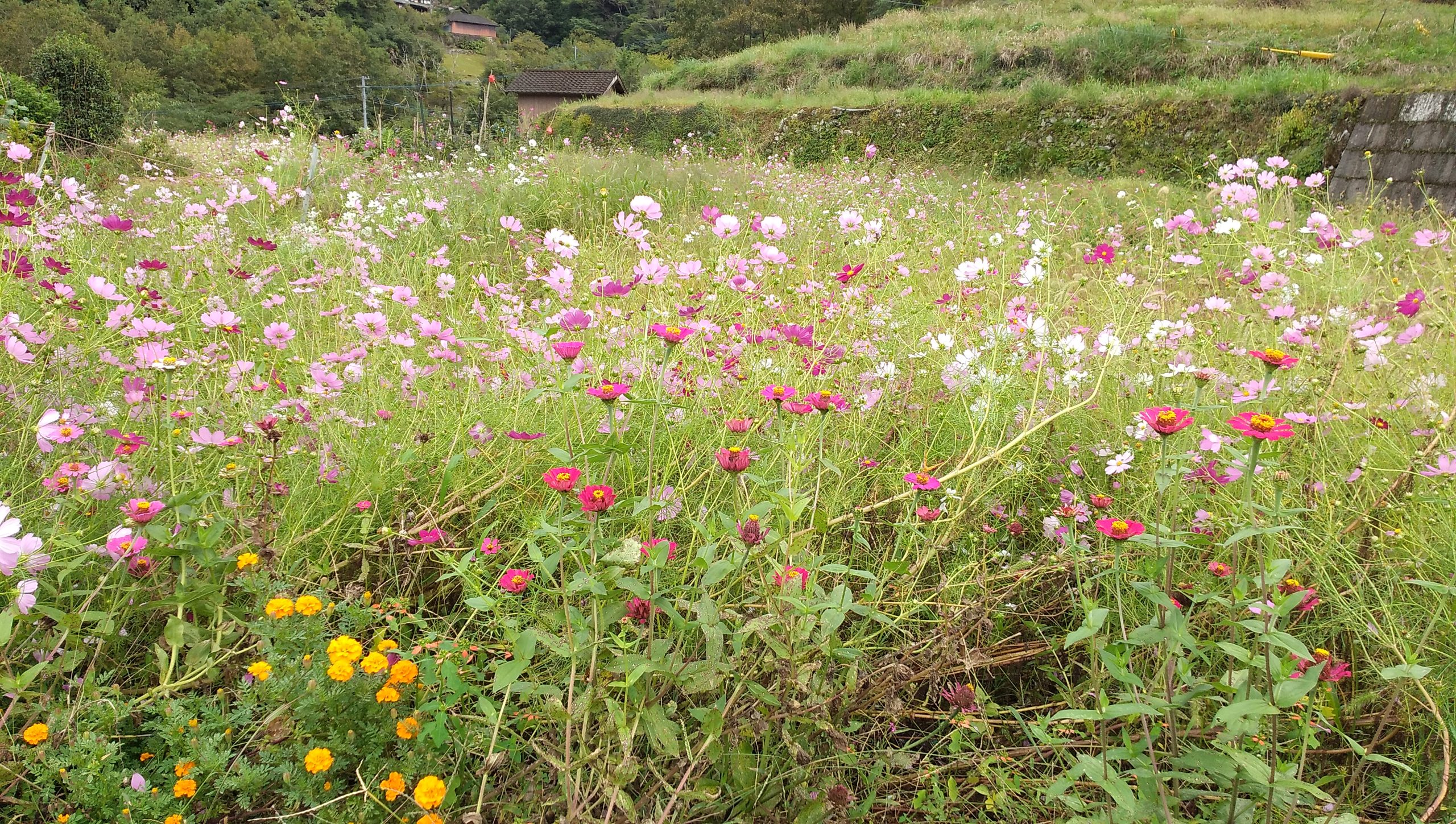 今週の「九州テクテク歩き」:豊後の国(大分県)の豊後大野市の三国峠 ( 佐伯藩、臼杵藩、岡藩の三国の藩境の峠 ) へ奥畑川(おくはたがわ)沿いに行く途中に咲いていました。キツネとタヌキとイノシシもシカも盆踊り ( クマは現在九州にはいないそうです。ずう~と以前に九州に生息していた最後のクマがこのあたりで捕られたと聞きました)するような山奥でしたから、とうとう三国峠に行き着く前に引き返すことにしました。