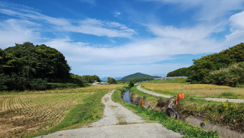 今週の「九州テクテク歩き」:肥後の国(熊本県)のスイカの産地で有名な植木市です。写真の先の里山の方向から歩いて、来て振り返って撮った写真です。JR植木駅へ行くのに道に迷い、年配の男性に道をお聞ききしたら、わざわざ途中まで案内していただきました。ありがとうございました。地上では道に迷いましたが、青い空と白い雲と出会った秋の10月でした。