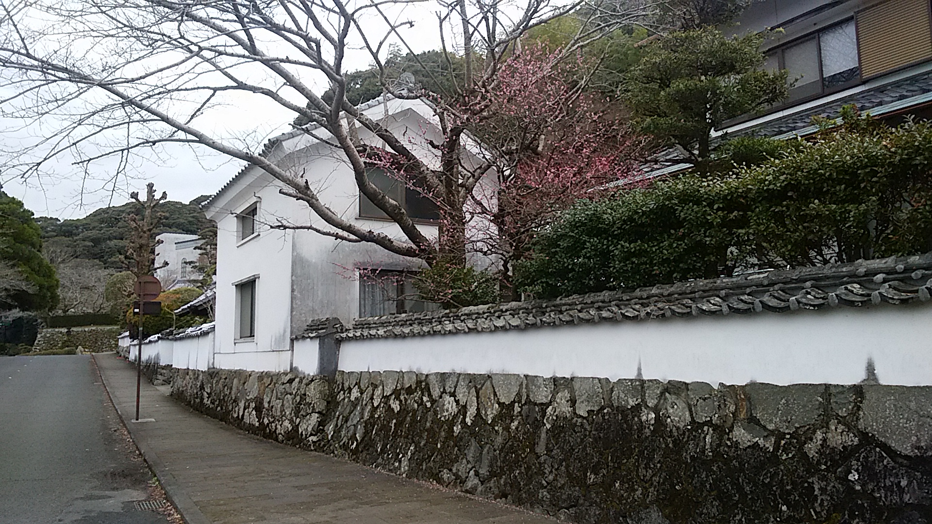 今週の「九州テクテク歩き」 : 豊後の国 ( 大分県 ) の佐伯市にある城山の麓には白壁が続いていました。