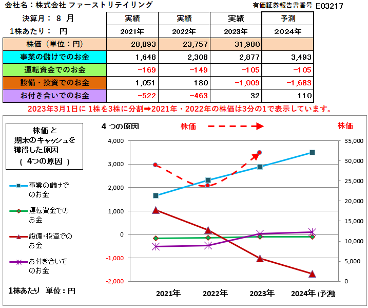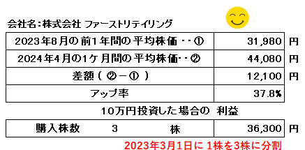 なお、2023年3月1日にを効力発生日として、1株を3株に株式分割を行っています。