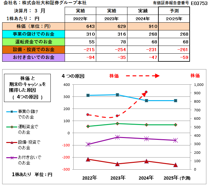 2024年3月決算期までの株価と財務数値のグラフを見て、12ケ月後の2025年3月の株価を判断してください。( 考えたうえで「回答です !! 」を見てくださいね )