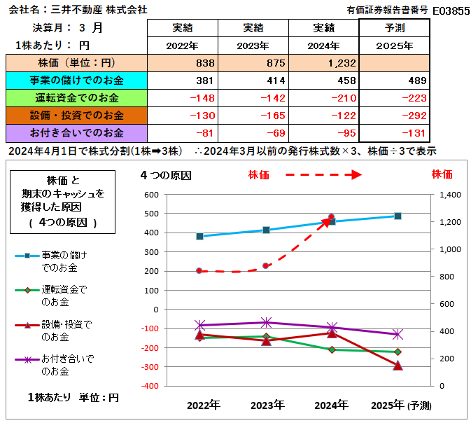 2024年3月決算期までの株価と財務数値のグラフを見て、12ケ月後の2025年3月の株価を判断してください( 考えたうえで「回答です !! 」を見てくださいね )