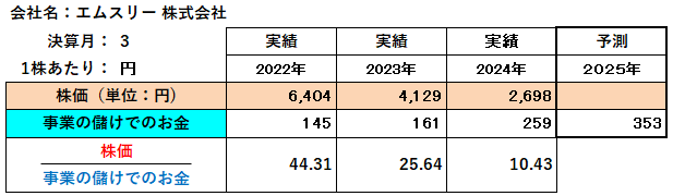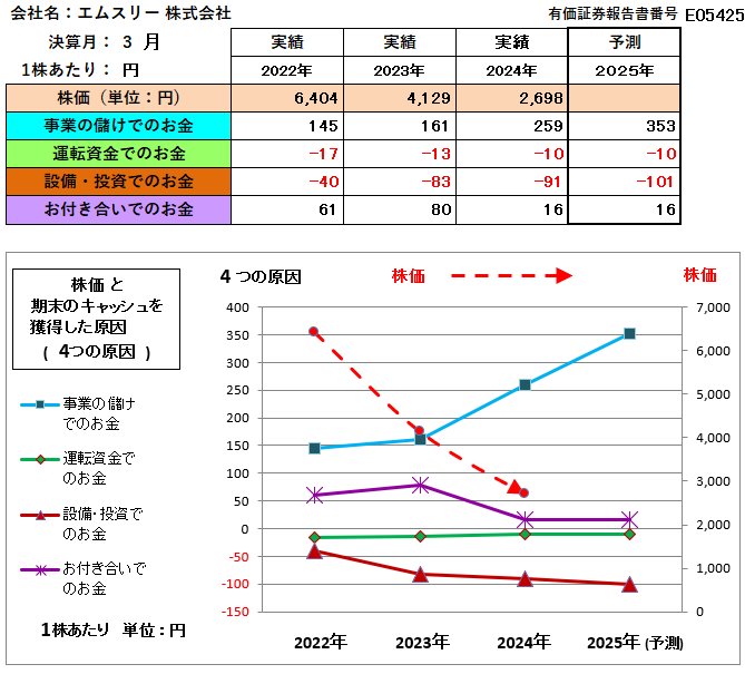 - 現時点での財務構造と過去の市場の反応パターンを見る限り、2025年に「事業の儲けで獲得したお金」が伸びる予測であっても、株価の大幅な回復は困難であると予測されます。