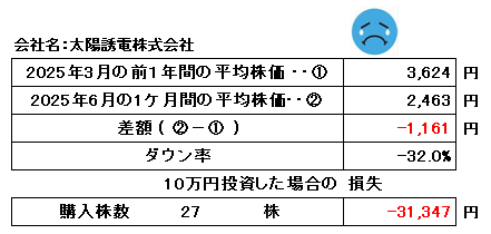 これらの分析に基づき、1年後の太陽誘電(株)の株価は、約3,100円~3,300円の範囲で推移すると予測します。特に、3,200円を下回る可能性も十分に考えられます