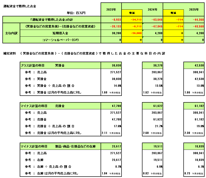 (2) 運転資金で獲得したお金 (運転資本の増減によるキャッシュフロー)