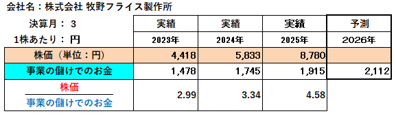 2025年3月決算の株価と財務数値のグラフを見て、1年後の 2026年3月の株価を判断してください。 ( 考えたうえで「回答です !! 」を見てくださいね 。)
