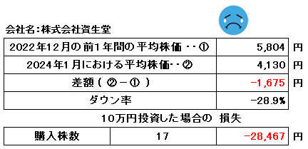 クイズ 10・・ (株)資生堂の株価は、上がる ? 下がる ?